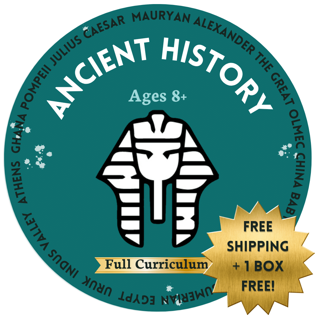 Our complete, stand-alone Full Ancient History Curriculum consists of 18 boxes with individual lesson plans, reading lists, a timeline poster, and hand-picked educator resources as well as our Welcome Box! Please view our FAQs for additional general information.