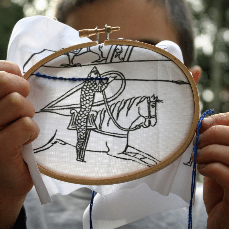 When French duke William the Conqueror invaded England and conquered Anglo-Saxon forces at the Battle of Hastings, it marked the end of Anglo-Saxon England. The Bayeux Tapestry tells the story of the end of the Anglo-Saxon chapter and exists as possibly the last and absolutely the best known example of Anglo-Saxon artwork. Now you can embroider a replica section of this famous artifact!
